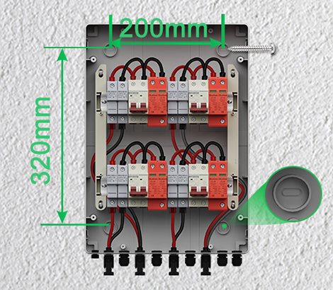 ກ່ອງ PV confiner 4 ໃນ 4 Out DC500V / 600V / 800VFFTYS ປົກປ້ອງ Inolverters ແລະ Panel Solar ຈາກຄວາມເສຍຫາຍແລະສົ່ງຈາກໄຟ.